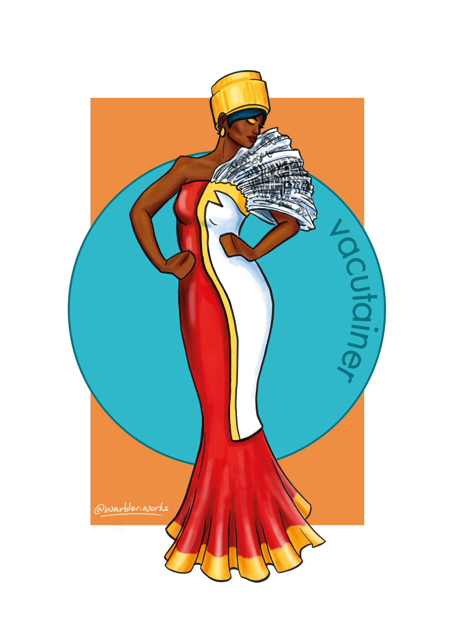 Inspired by Cells at Work, a cocktail dress for the fashionable red blood cell. Complete with a blood bag cross-body purse, and necklace made of segments.